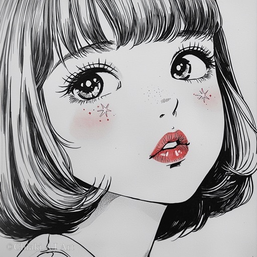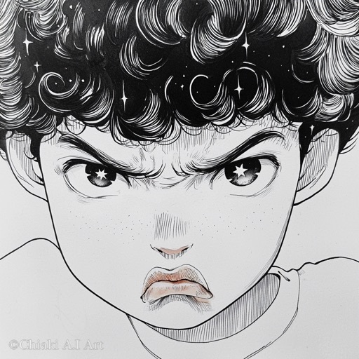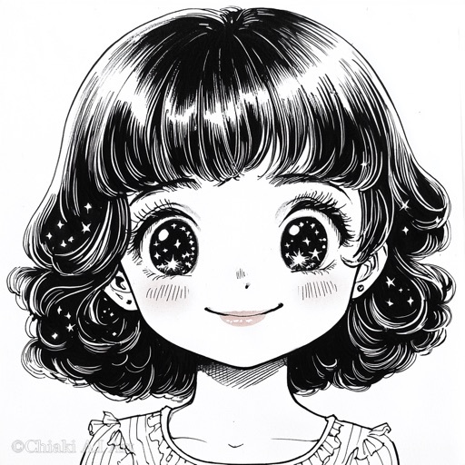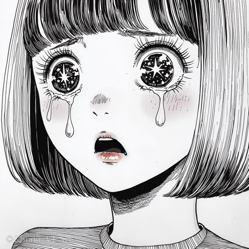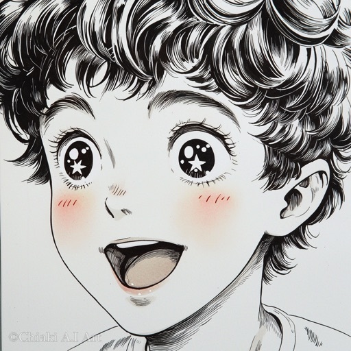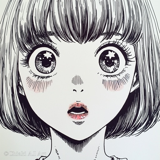 目の中で🌟がキラキラしている昭和の漫画風イラストです😀